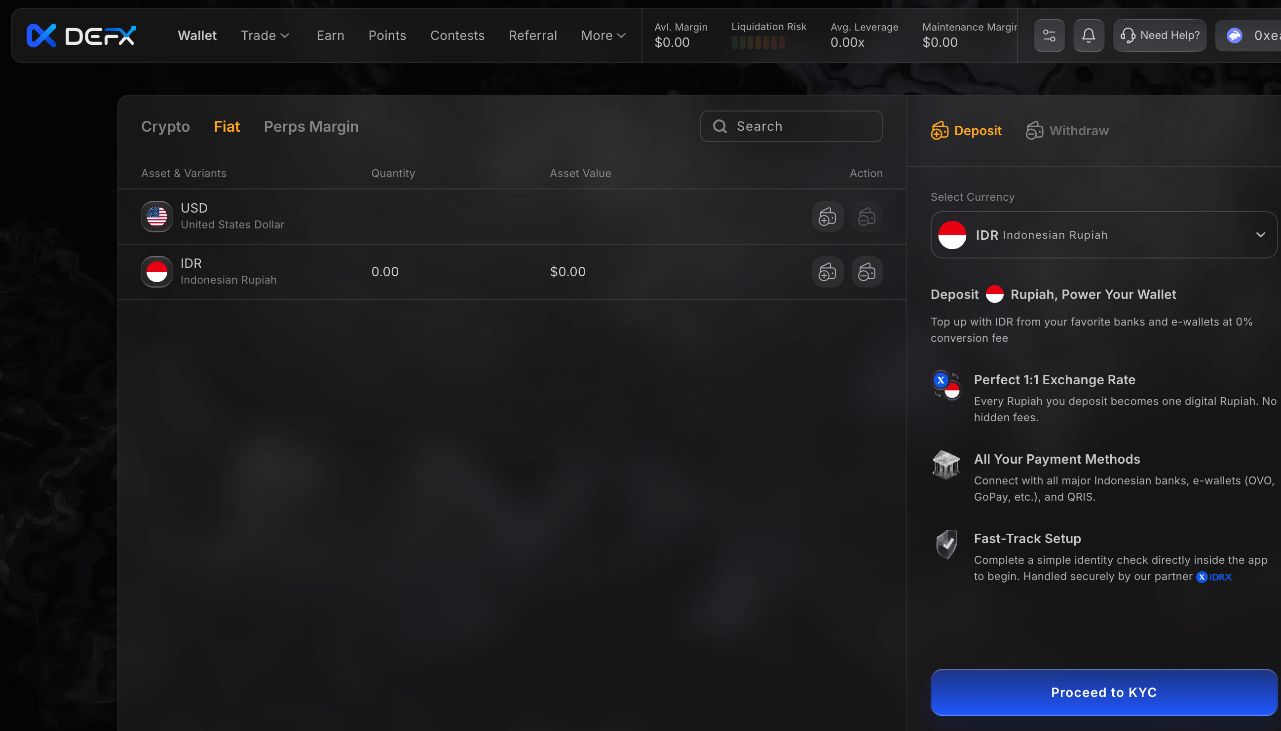 This is why we are proud to announce our partnership with IDRX, a stablecoin pegged 1:1 to the Indonesian Rupiah. This integration allows Indonesian users to seamlessly deposit and withdraw IDR, convert into on-chain assets, and begin trading or earning yield on Defx.